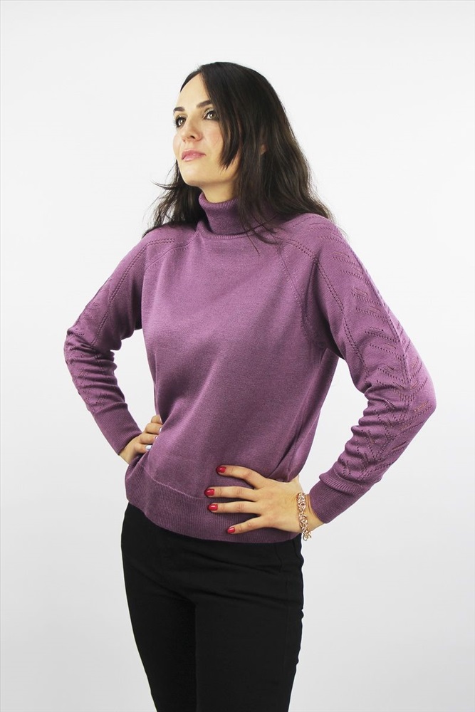 Свитер второго слоя одежды, укороченый, с длинным рукавом "реглан". Вырез горловины обработан отложным воротником, высотой в г.в. 17,0+-0,5 см.