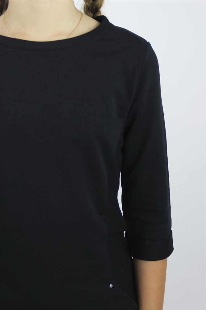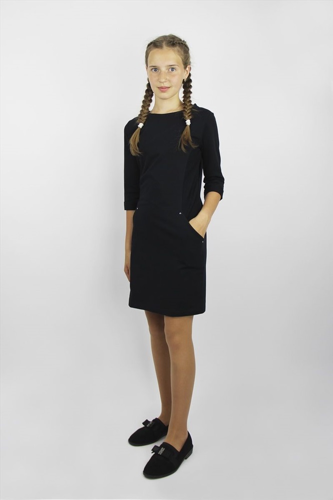Страна производитель: Республика Беларусь Комплектация: Платье Сезон: Демисезон Коллекция: Осень-Зима, Осень 2022 Стиль: На каждый день Цвет: черный Материал: трикотаж, хлопок Рост: 152, 158 см Состав: Хлопок 95%, Эластан 5% Описание: Платье полуприлегающего силуэта расклешонное к низу с втачным рукавом длиной за линию локтя. Рукав с отворотом, на отвороте выполнены закрепки. В боковых деталях переда обработаны карманы. На карманах по 2 термостразы. Горловина - лодочка. Длина платья до середины бедра. Комментарии к товару
