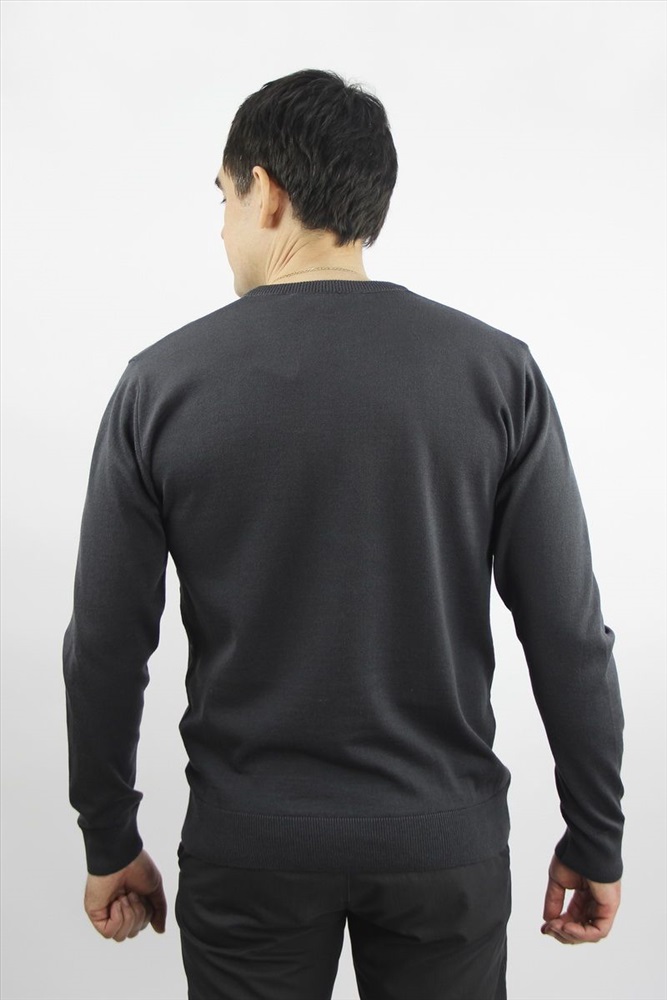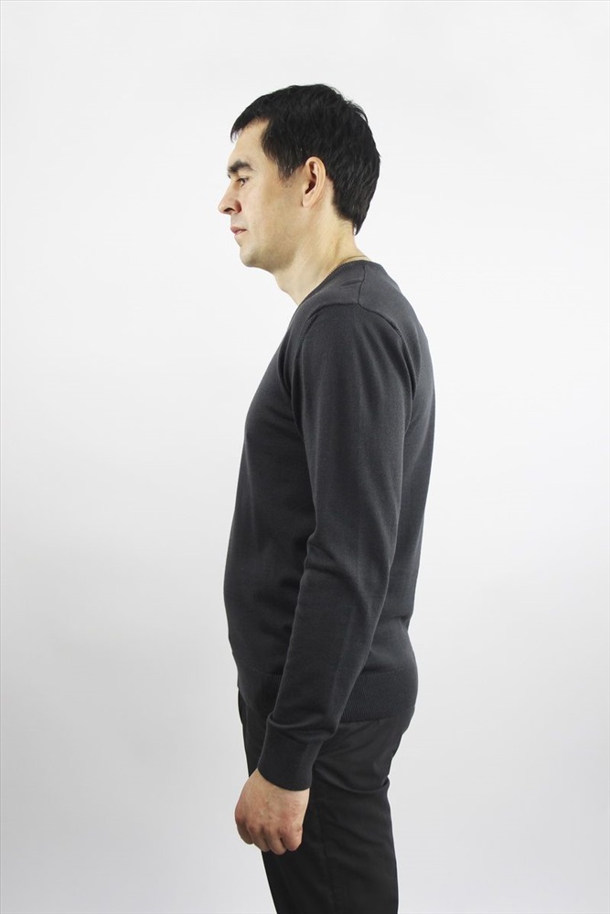 Джемпер мужской,второго слоя одежды,прямого силуэта, немного заужен книзу,с длинным втачным рукавом. У-образный вырез горловины обработан двойной ластичной бейкой.