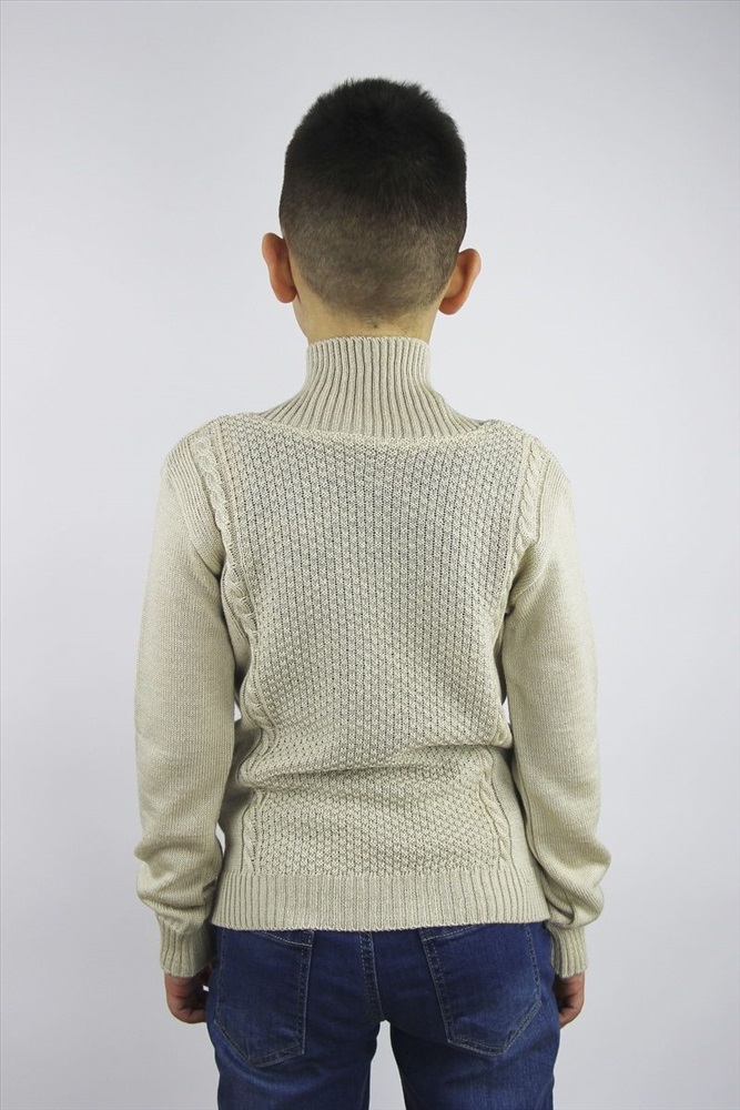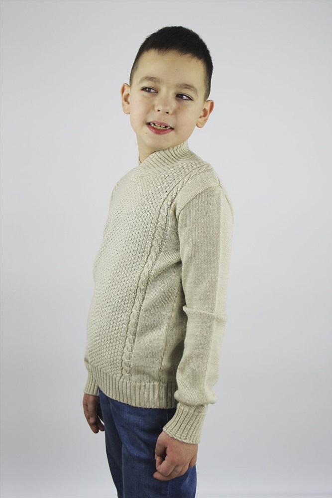 Джемпер для мальчика второго слоя одежды прямого силуэта с длинным втачным рукавом. Горловина обработана притачным воротником