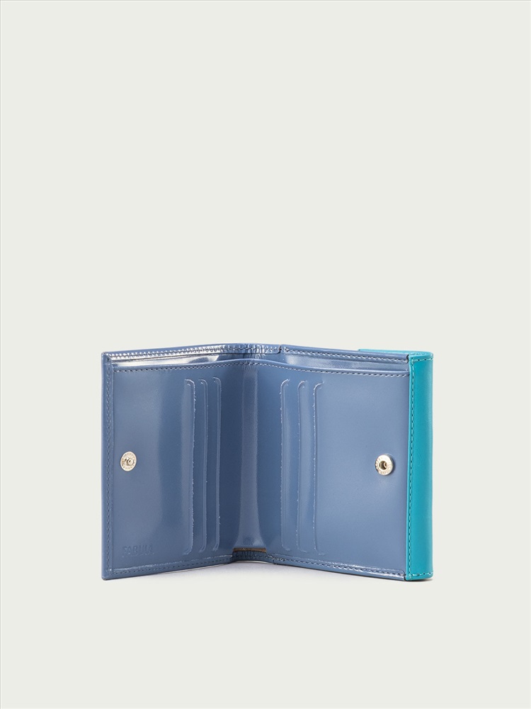 Компактное женское портмоне выполнено из натуральной кожи. Закрывается на кнопку. Внутренний функционал: отделение для купюр, 6 карманов для кредитных карт. На внешней стороне карман для мелочи на кнопке. Внешний размер: 110х110х025. Упаковка: подарочная коробка.