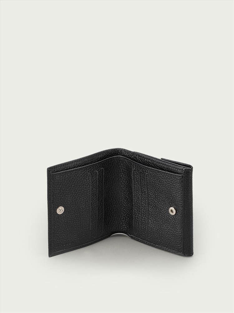 Компактное женское портмоне выполнено из натуральной кожи. Закрывается на кнопку. Внутренний функционал: отделение для купюр, 6 карманов для кредитных карт. На внешней стороне карман для мелочи на кнопке.Отличительная черта: декоративная строчка.Размер: 105x110x025.Упаковка: подарочная коробка.