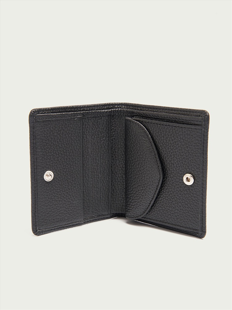 Компактное портмоне выполнено из натуральной кожи. Закрывается на кнопку, внутри расположено одно отделение для купюр, два отделения для карт, 2 вертикальных скрытых кармана, а так же отделение для мелочи на кнопке. Цвет фурнитуры: никель. Внешний размер: 090х112х020. Упаковка: подарочная коробка.