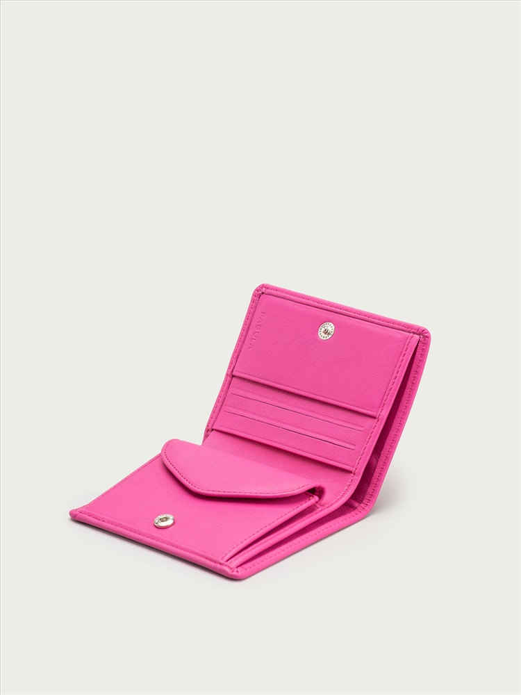Компактное портмоне выполнено из натуральной кожи. Закрывается на кнопку, внутри расположено одно отделение для купюр, два отделения для карт, 2 вертикальных скрытых кармана, а так же отделение для мелочи на кнопке. Цвет фурнитуры: никель. Внешний размер: 090х112х020. Упаковка: подарочная коробка.