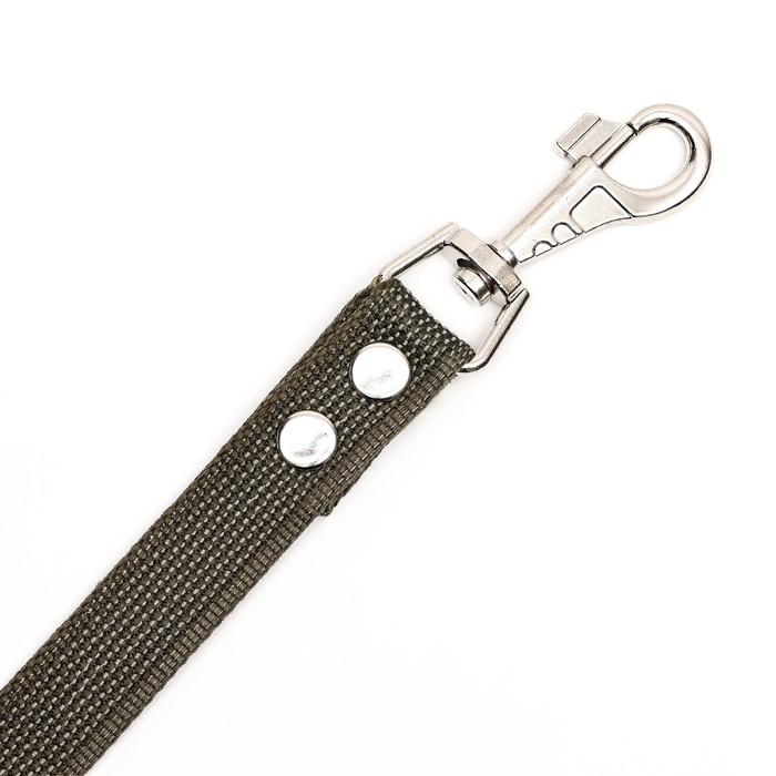 Практичный и надежный поводок из брезента. Поводок применяется для прогулок и дрессировки собаки. Он отличается высокой прочностью и долговечностью. Изделие снабжено надежным карабином из высококачественной стали, а специальный переходник позволяет карабину крутиться вокруг своей оси, предотвращая запутывание. На поводке имеется петля, которая одевается на руку для более удобного использования.