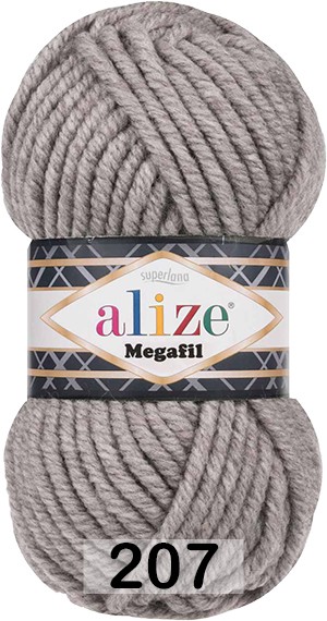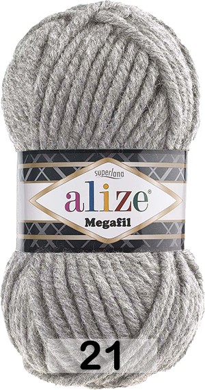 Ализе мегафил. Очень толстая однотонная пряжа средней толщины с 25% шерсти. Подходит для создания снудов, кардиганы, шапок и шарфов из этой пряжи отлично держат форму и прекрасно согреют Вас в холодную погоду. Инструменты: спицы 12-15, крючок 10 - 12.