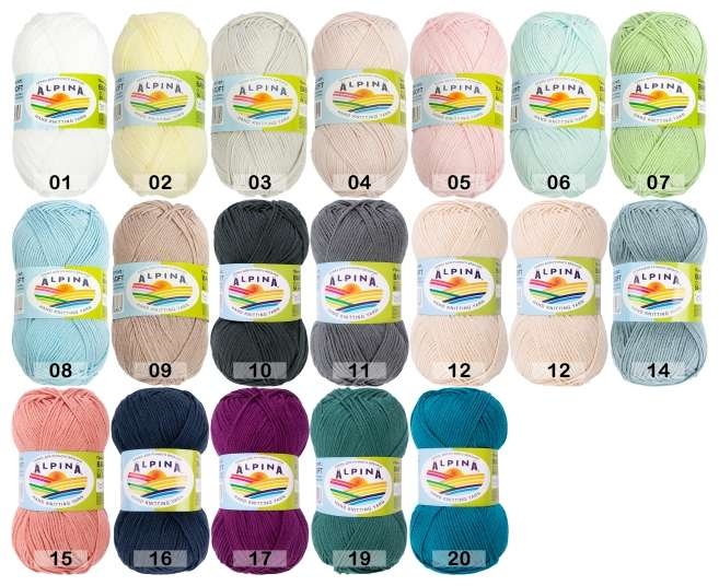 Пряжа ALPINA "BABY SUPER SOFT" подойдет для вязания детских вещей, а также для людей с чувствительной кожей. Нежная, шелковистая пряжа из смеси волокон хлопка и бамбука. Этот состав придает изделиям приятные и полезные в носке свойства: гигроскопичность, несминаемость, мягкость. Рекомендуемый диаметр спиц/крючка для пряжи - 2.5-3.5 мм