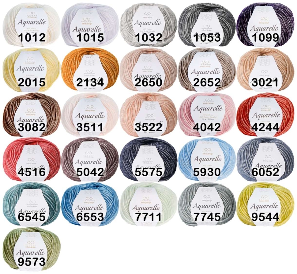 Пряжа для ручного вязания Акварель Состав: 65% хлопок, 35% мериносовая шерсть 50г/110м Рекомендуемый размер спиц: 4,5-5,5 мм. Плотность вязания: 10 см 18-16 п. Бережная ручная стирка. Основой этой великолепной пряжи является хлопковый шнурок набитый мериносовой шерстью. За счет чего изделия из нее получаются легкими и теплыми. Эта пряжа для вязания подходит для детской одежды. Расход очень экономичен. Двух моточков достаточно на шапку 56-58 см, а на джемпер 44-46 примерный расход 6 мотков. Мериносовая пряжа, в сочетании с хлопком добавляет изделию легкости без потери теплоизолирующих свойт. Это по праву детская пряжа, это пряжа для вязания шапок, шарфов, джемперов, кардиганов и прочих изделий. Пряжа для вязания руками представлена в нежной цветовой гамме меланжевого крашения, в процессе вязания изделия нить ложится аккуратными и ровными рядами. Пряжа идеально подойдет для взрослых и для детей, а ассортимент цветов нитей дают большой простор фантазии.