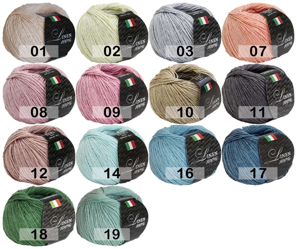 Лён сложно красить и выбеливать, но он имеет замечательную естественную гамму оттенков, преимущественно серо-бежевых. Палитра пряжи LINEN 100 включает в себя весь спектр природных тонов - от песочно-бежевого и золотисто-желтого до цвета тростника и розовой пудры. Подходит для вязания крючком и спицами.