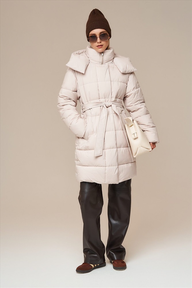 Длина изделия по спинке: 90 см Длина рукава: 66 см Утеплитель: синтепух Плотность утеплителя: 260 г/м2 Температурный режим: от -5°С до - 20°С Покрой: прямой Тип рукава: спущенное плечо Тип карманов: листочки на потайных кнопках Состав: 100% полиэстер Материал подкладки: 100% полиэстер Размеры: 42-56 Детали: застежка на молнию и потайные кнопки, В комплекте пояс из основной ткани. Капюшон: отстежной