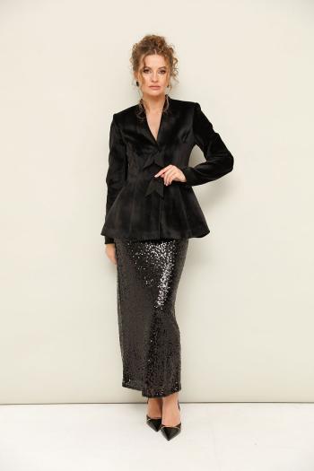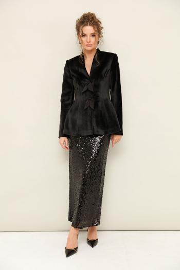 Прямая юбка из велюра с пришитыми во верху пайетками. Пояс юбки на резинке. Юбка на подкладке, сзади разрез для свободы движения. Комментарии к товару