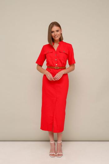 Элегантное платье из джинса средней плотности. Прямого силуэта, длина миди, застегивается на пуговицы по груди. Спереди по низу неглубокий разрез, что добавляет элегантности и женственности этой модели. Ремень в комплекте. Комментарии к товару