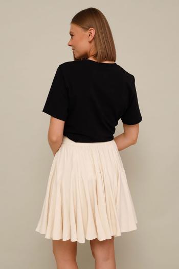 Эффектная мини-юбка А-образного силуэта, за счет втачных клиньев разной высоты. Притачной пояс на резинке, со строчками.