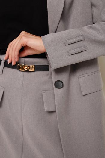 Стильный 2-предметный комплект, состоящий из жакета и юбки-шорт. Комплект выполнен из качественной костюмной ткани. Жакет современного прямого силуэта однобортный, застёгивающийся на петли и пуговицы, край борта скругленный по низу изделия. Воротник пиджачного типа с отложными лацканами. По переду обработаны прорезные карманы в рамку с клапанами. Рукава втачные двухшовные. Спинка со средним швом. Изделие на подкладке. Юбка-шорты в длине мини, на обтачке по поясу спереди и с притачным поясом по спинке. На переднем полотнище обработаны клапаны, имитирующие карманы. Застежка в боковом шве на потайную тесьму-молнию. По низу рукавов жакета и в юбке-шортах по линии талии предусмотрены шлевки. В комплекте прилагается акцентный пояс. Комментарии к товару