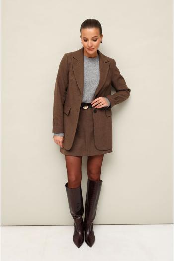 Стильный 2-предметный комплект, состоящий из жакета и юбки-шорт. Комплект выполнен из Жакет современного прямого силуэта однобортный, застёгивающийся на петли и пуговицы, край борта скругленный по низу изделия. Воротник пиджачного типа с отложными лацканами. По переду обработаны прорезные карманы в рамку с клапанами. Рукава втачные двухшовные. Спинка со средним швом. Изделие на подкладке. Юбка-шорты в длине мини, на обтачке по поясу спереди и с притачным поясом по спинке. На переднем полотнище обработаны клапаны, имитирующие карманы. Застежка в боковом шве на потайную тесьму-молнию. По низу рукавов жакета и в юбке-шортах по линии талии предусмотрены шлевки. В комплекте прилагается акцентный пояс. Комментарии к товару