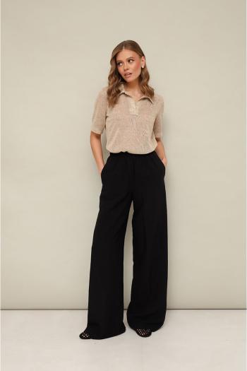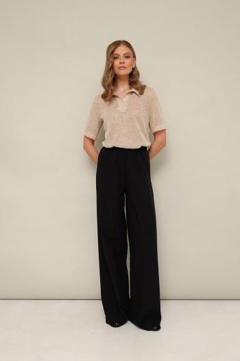 Стильный 2-предметный комплект, состоящий из поло и брюк. Поло с отложным воротником с цельнокроеной стойкой, V-образный вырез горловины обработан притачными планками. Короткие втачные рукава. Брюки прямого силуэта с боковыми наклонными карманами, спереди обработана имитация гульфика. Пояс притачной на резинке, для регуляции размера. Длина брюк разработана с учетом усадочных свойств натуральной ткани. Комментарии к товару