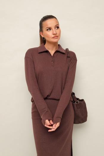 Комфортный трикотажный комплект, состоящий из поло и юбки.