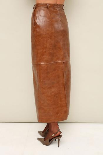 Стильный 2-предметный комплект, состоящий из жакета и юбки, выполненный из экокожи. Юбка на подкладке в длине миди с боковыми наклонными карманами. Притачной пояс с застежкой в среднем шве на потайную молнию. Для удобства движения сзади обработана шлица. Комментарии к товару