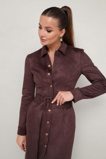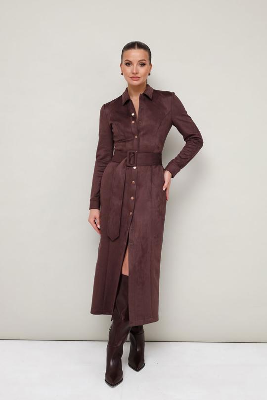 Силуэтное платье в длине миди, выполнено из экозамши. Комментарии к товару