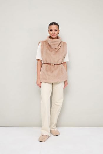 Стильный жилет прямого силуэта, выполнен из искусственного меха на подкладке. Цельнокроеный воротник-стойка. Идеальный выбор для холодных дней, который сочетает в себе комфорт, тепло и актуальный дизайн. *Ремень представлен как вариант стилизации образа. Комментарии к товару
