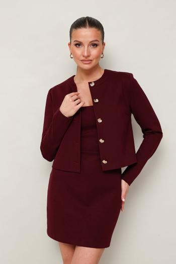 Стильный 2-предметный комплект, состоящий из платья и жакета, выполненный из трикотажа нейлона. Платье прилегающего силуэта, отрезное по линии талии в длине мини. Горловина оформлена вырезом каре. Застёжка в среднем шве по спинке на потайную молнию. Жакет полуприлегающего силуэта, с центральной застёжкой на петли и акцентные пуговицы. Длинные втачные рукава. Спинка со средним швом. Комментарии к товару