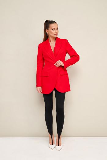 Стильный жакет полуприлегающего силуэта, выполнен из костюмной ткани. Смещенная застежка на петлю и пуговицу. Воротник пиджачного типа с отложными лацканами, край борта скругленный по низу жакета. Спереди обработаны прорезные карманы в рамку с клапанами. Рукава втачные, двухшовные со шлицами с застежкой на петли и пуговицы. Спинка с рельефами и средним швом. Жакет на подкладке. В комплекте прилагаются леггинсы со штрипками. Комментарии к товару