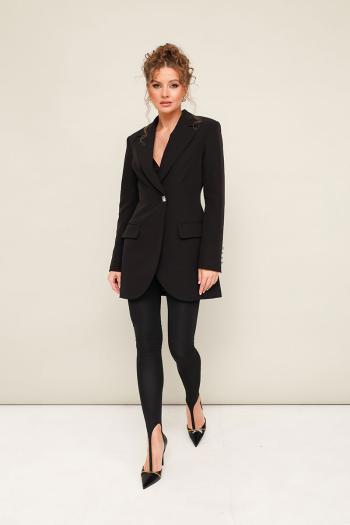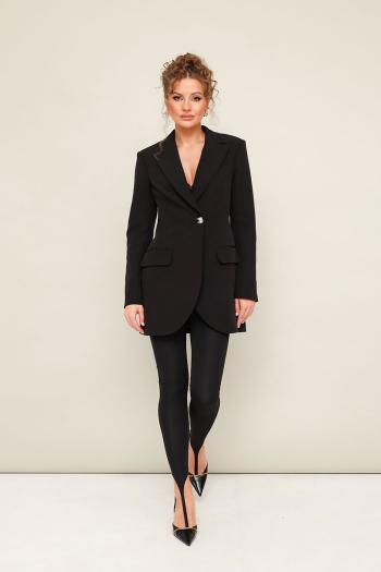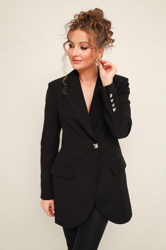 Стильный жакет полуприлегающего силуэта, выполнен из костюмной ткани. Смещенная застежка на петлю и пуговицу. Воротник пиджачного типа с отложными лацканами, край борта скругленный по низу жакета. Спереди обработаны прорезные карманы в рамку с клапанами. Рукава втачные, двухшовные со шлицами с застежкой на петли и пуговицы. Спинка с рельефами и средним швом. Жакет на подкладке. Комментарии к товару