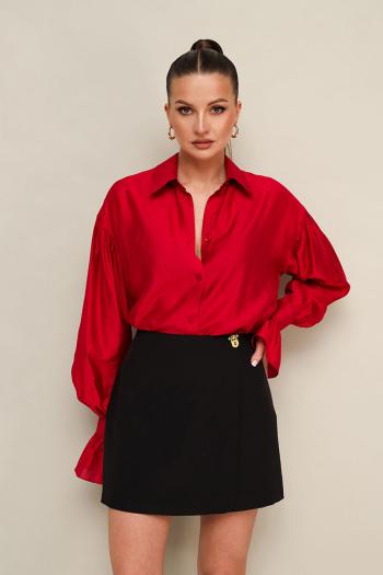 Юбка-шорты в длине мини, выполнена из костюмной ткани. Спереди имитация юбки на запах с застежкой на акцентную пуговицу. Основная застёжка в боковом шве на потайную молнию. Комментарии к товару