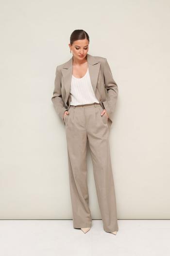 Стильный 3-предметный комплект, состоящий из жакета, топа и брюк, выполнен из натуральной ткани с высоким содержанием вискозы. Комментарии к товару