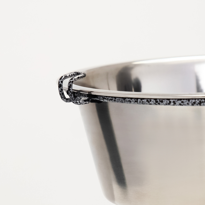 Производитель: Пижон; Габариты: 47 x 28 x 9; Страна: Индия; В боксе: 6 шт; Состав: Нержавеющая сталь; Материалы: нержавеющая сталь; Фасовка: по 1 шт; Индивидуальная упаковка: Без упаковки; Габариты товара: 47 см × 28 см × 9 см; Сертификат: Не подлежит сертификации; Цвет: Чёрный, Серебристый; Форма: Круглая; Объём, мл: 1800; Рисунок: Нет; Материал: Металл; Особенности: На подставке/на ножках; Вид: Двойная