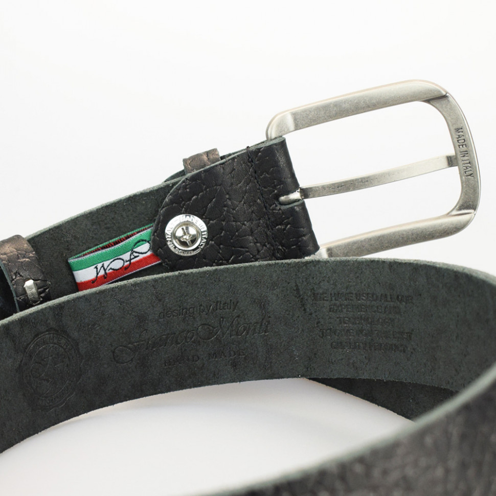 Ширина: 40мм Длина: 105-125 см Производитель: Franсo Monti Цвет: Черный Ремень джинсовый шириной 40 мм, с элементами ручной работы. Комментарии к товару