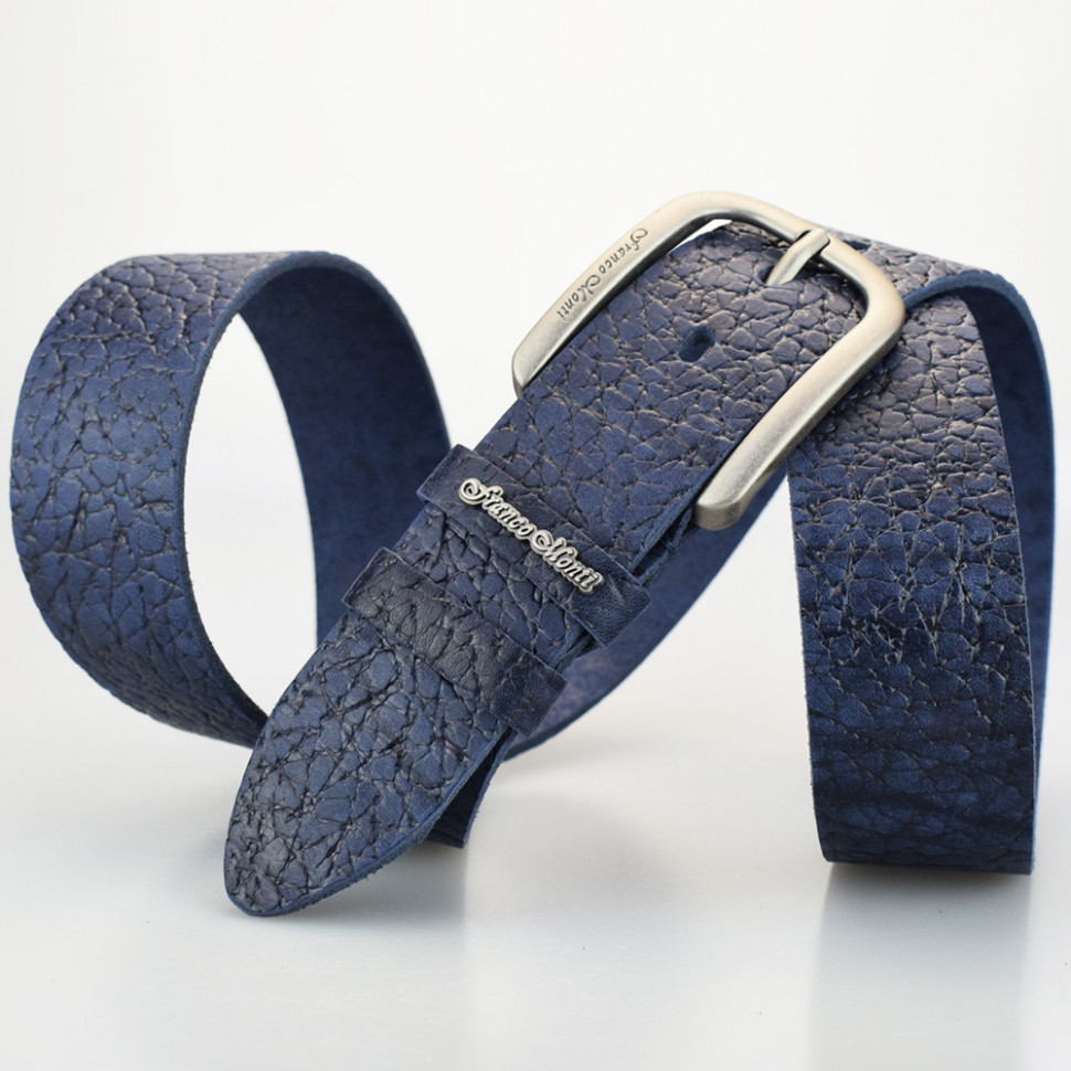 Ширина: 40мм Длина: 105-125 см Производитель: Franсo Monti Цвет: Синий Ремень джинсовый шириной 40 мм, с элементами ручной работы. Комментарии к товару