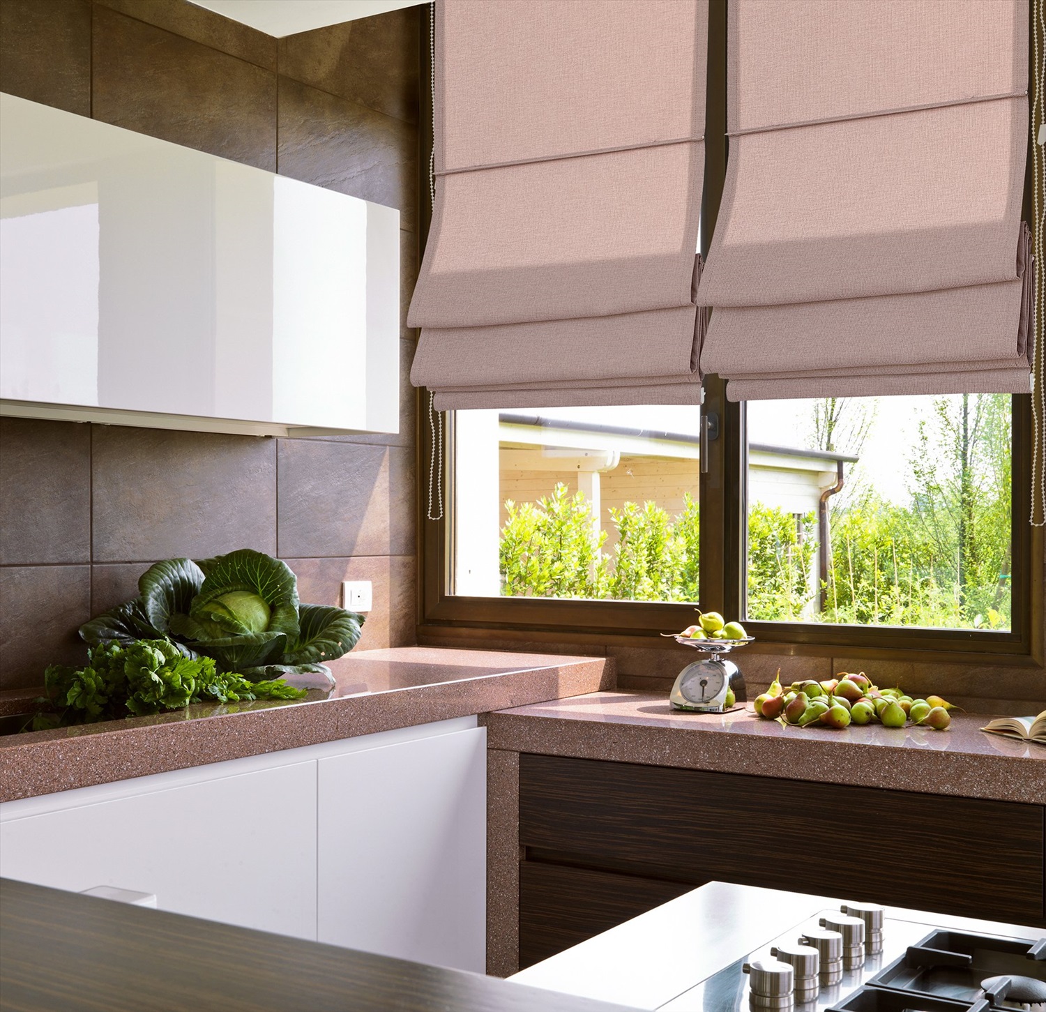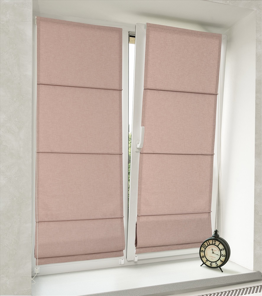 Римская штора мини из полиэстера бежево-розового оттенка. Подходит для любых помещений, она надежная и простая в уходе. В комплекте есть все необходимое для самостоятельной установки и эксплуатации.