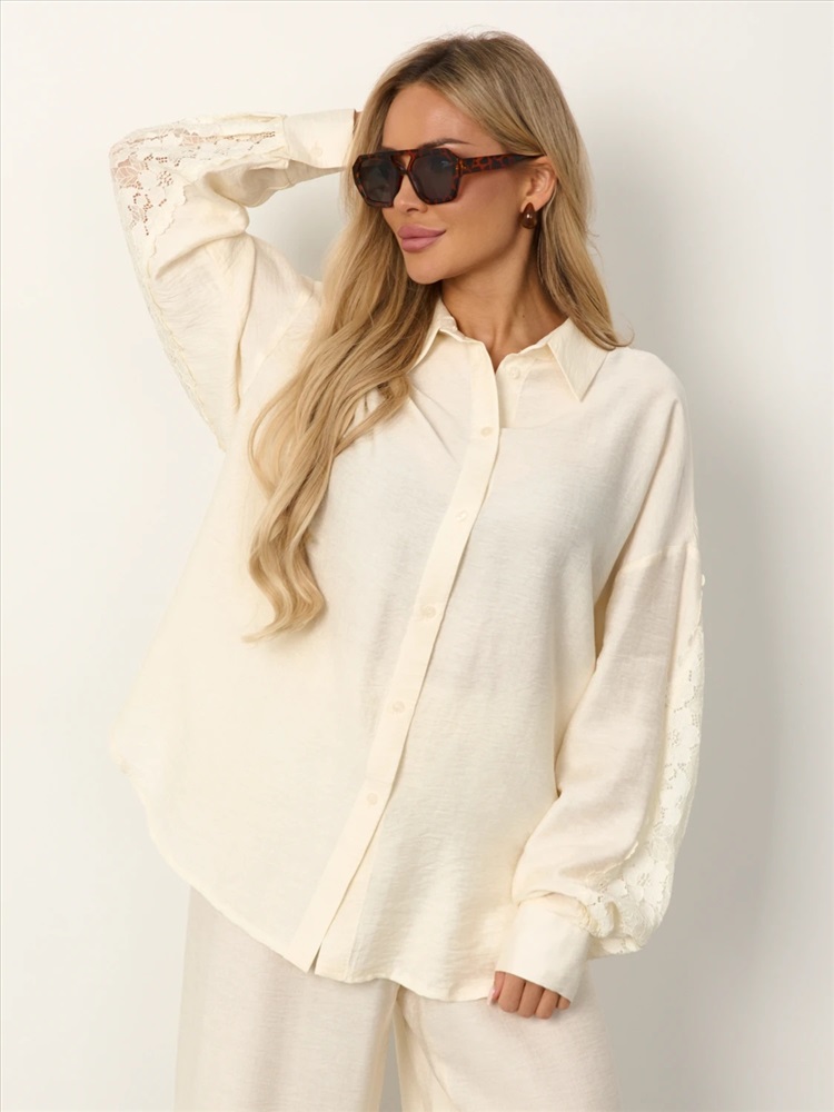 По спинке и рукавам отделка из кружева в цвет изделия. Спущенная линия плеча. Широкий рукав с манжетой на пуговице. Застежка на пуговицы. Комментарии к товару