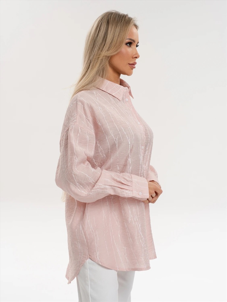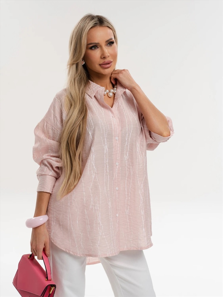 Рубашка свободного кроя со спущенным плечом.