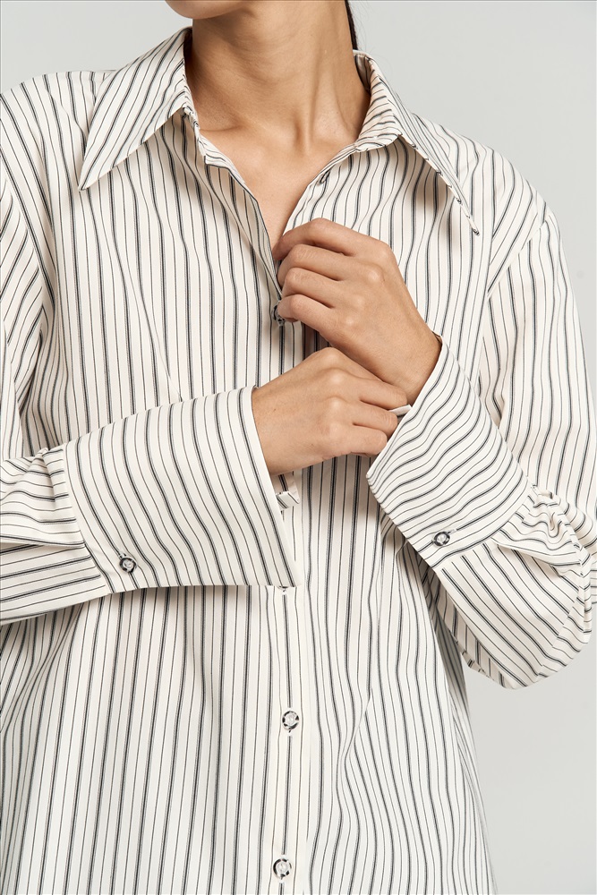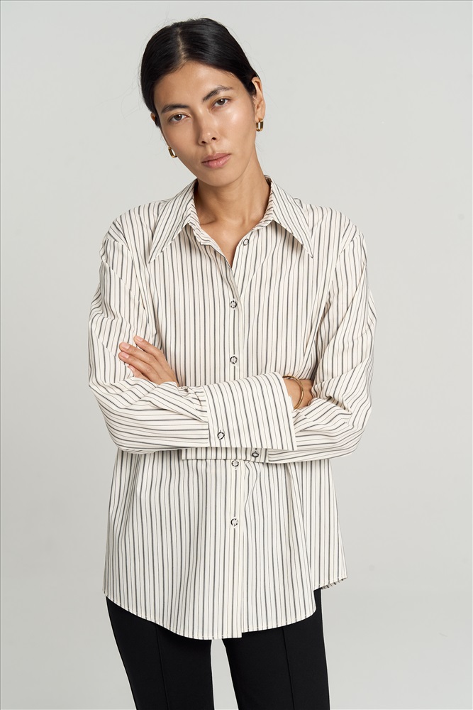 Состав: 50% Хлопок 50% ПЭ Длина: 71 см. Цветовая гамма: Белый/полоса графит Силуэт: Прямой Принт: Да Коллекция: Осень #5 Расслабленная рубашка прямого кроя из мягкого хлопка. Модель прямого силуэта имеет слегка спущенную линию плеча, длинные рукава с широкими манжетами на пуговицу. По спинке кокетка со складкой. Комментарии к товару