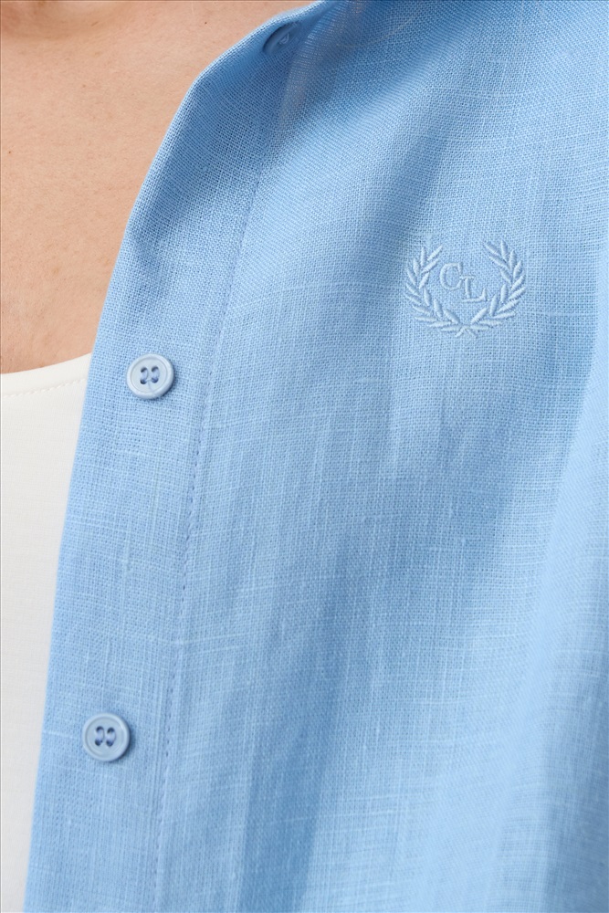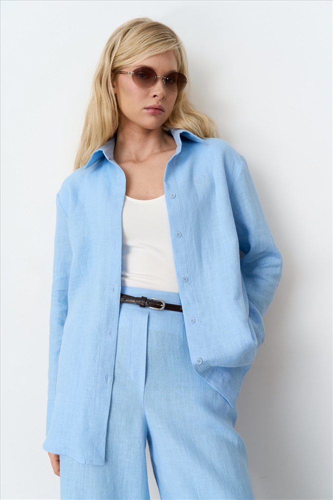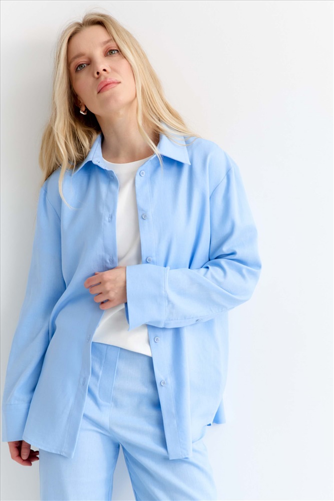 Состав: 100% Лен Длина: 67 см. Цветовая гамма: Голубой Силуэт: Прямой Принт: Нет Коллекция: Весна #2 Базовая рубашка из натурального льна в трендовом оттенке. Модель прямого силуэта. Рукав прямой, втачной, по низу широкая манжета. На спинке отрезная кокетка со складкой. Комментарии к товару