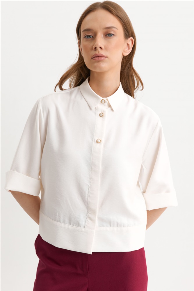 Состав: 90% Лиоцелл 10% Нейлон Длина: 54 см (42 размер), 57 см (52 размер) Цветовая гамма: Молочный Силуэт: Свободный Принт: Нет Коллекция: Лето #4 Укороченная блуза-рубашка с закрытой планкой из лиоцелла. Модель свободного силуэта. Рукав втачной короткий с манжетой. По переду застежка с акцентными пуговицами переходящая в супатную. По низу изделия широкая декоративная подгибка. Комментарии к товару