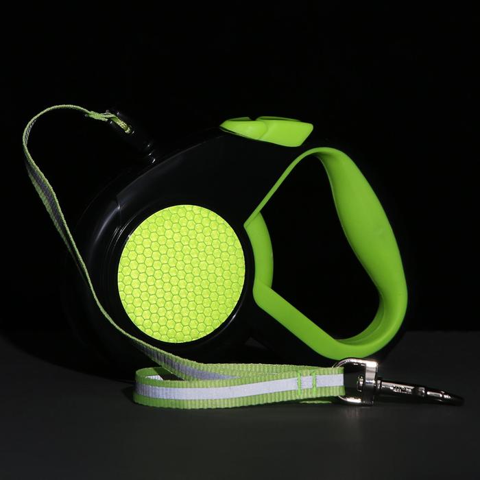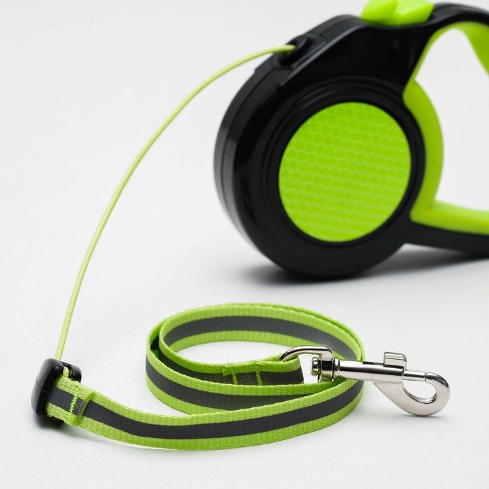 Рулетка обладает прорезиненной ручкой, которая позволяет комфортно и надежно держать руку во время прогулки.