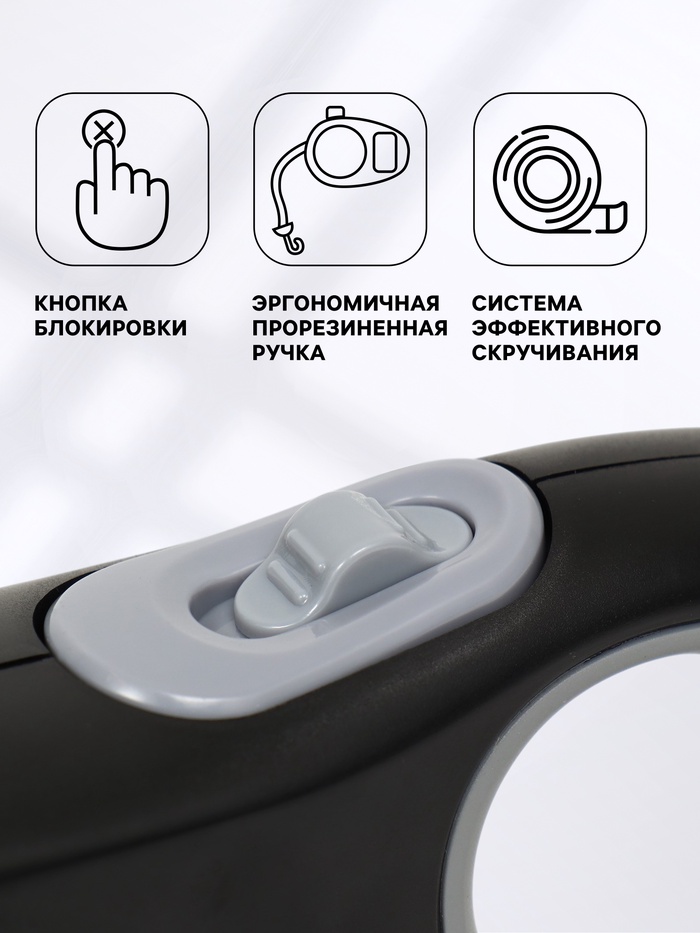 Система эффективного скручивания поводка позволяет удобно и быстро управлять длиной поводка, не давая ему запутываться. Кроме того, рулетка оснащена кнопкой блокировки, которая позволяет фиксировать длину поводка на нужном месте.