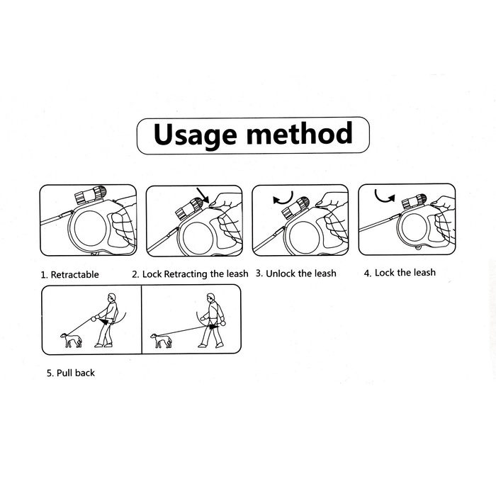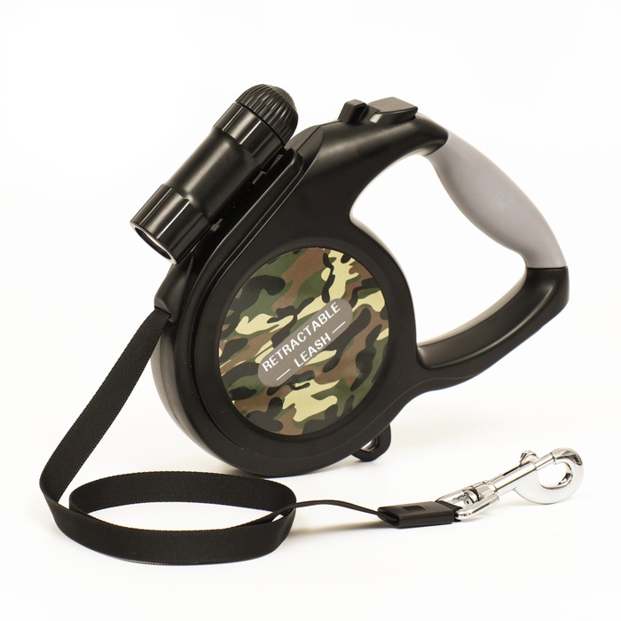 Съёмный LED-фонарик позволяет освещать путь в темное время суток, что делает прогулки безопаснее и комфортнее. Рулетку можно легко и удобно повесить на сумку. Также можно прикрепить контейнер для пакетов.