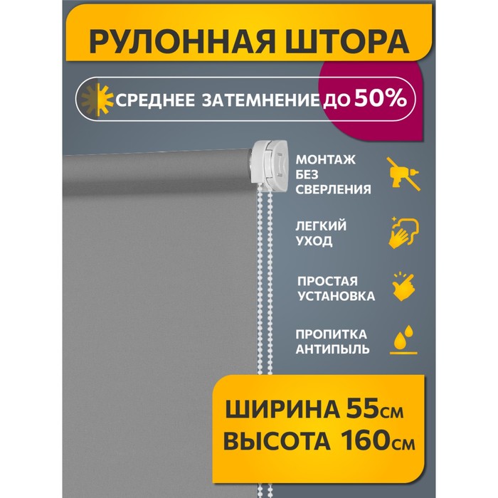 Производитель: Decofest; Габариты: 3,8 x 3,8 x 71; Доставка: Платная; Страна: Россия; Фасовка: по 1 шт; Сертификат: ЕАС; Цвет: Серый; Ширина, см: 55; Высота, см: 160; Рисунок: Нет; Светопроницаемость, %: 50; Крепления входят в комплект: Да; Материал шторы: Полиэстер; Особенность шторы: Без особенностей; Тип крепления: Шурупы; Место установки: Стеновое крепление; Фиксированная цена: Да