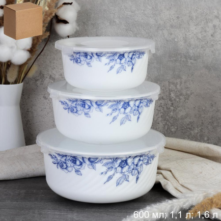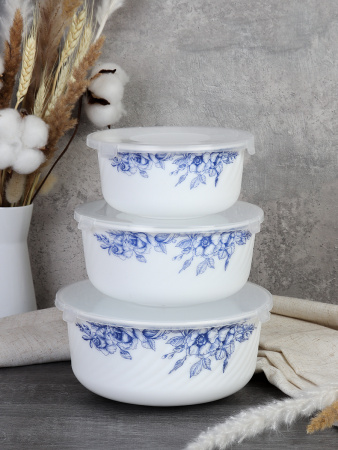 Салатник с крышкой 3 предмета / GRAY-HDW3B (7367) /уп 12/ Цветы гжель
