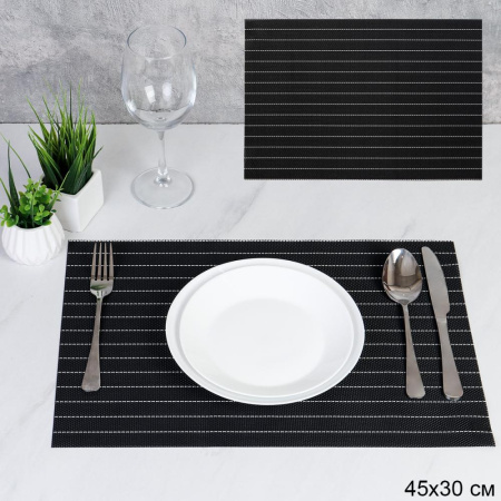 Салфетка для сервировки стола 30х45 см ШТУЧНО / ST210015 /уп 10/300/черная в белую полоску