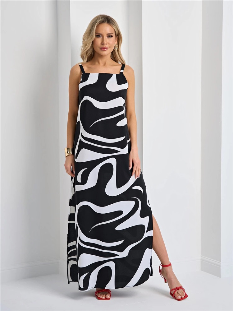 Сарафан прямого кроя на бретелях. В боковых швах с обеих сторон разрезы. Комментарии к товару