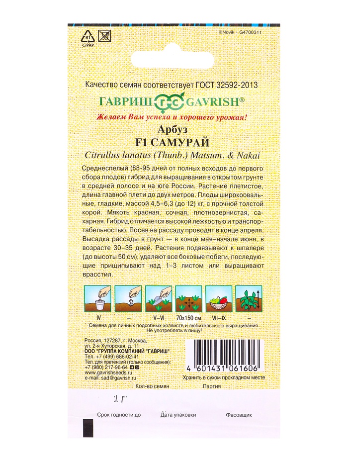 Семена Арбуз «Самурай», 1 г, «Гавриш»