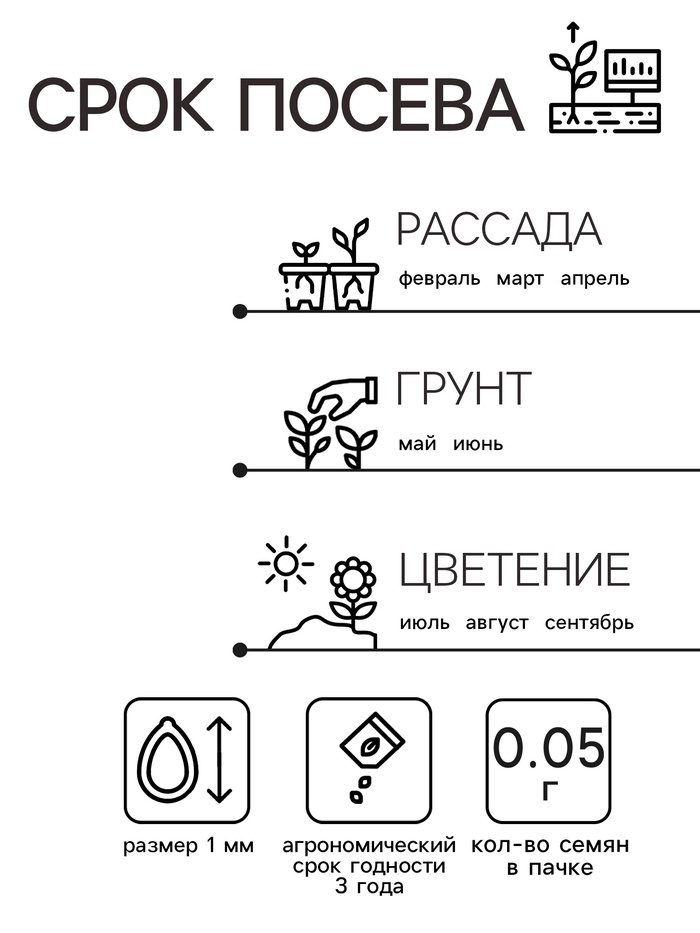 * Компактный размер упаковки (всего 0,05 г) позволяет легко хранить и использовать семена;