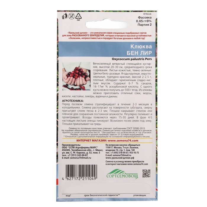 Производитель: Уральский Дачник; Габариты: 15 x 8 x 0,2; Страна: Россия; В боксе: 200 шт; Состав: Семена; Материалы: семена; Фасовка: по 10 шт; Индивидуальная упаковка: Без упаковки; Сертификат: Не подлежит сертификации; Цвет: Красный; Сроки созревания: Поздний; Посев на рассаду: Апрель; Посев (посадка) в грунт: Май; Место выращивания: Открытый грунт; Нуждаются ли в стратификации: Нет
