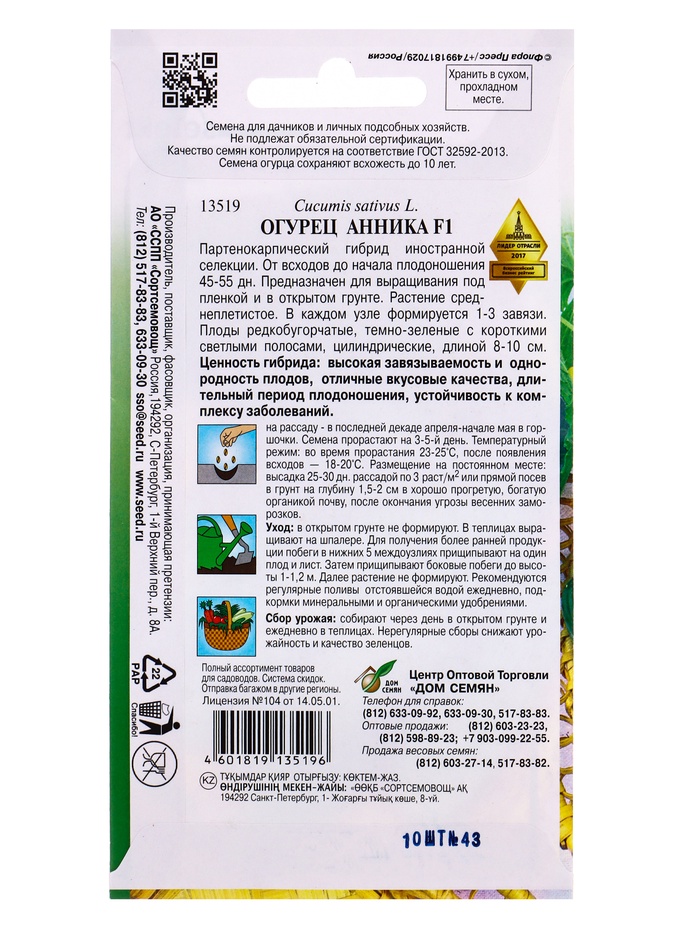 Производитель: Дом семян; Габариты: 0 x 0 x 0,2; Страна: Россия; В боксе: 300 шт; Состав: Семена; Материалы: семена; Фасовка: по 1 шт; Индивидуальная упаковка: Без упаковки; Сертификат: Не подлежит сертификации; Тип: Партенокарпические; Посев на рассаду: Апрель, Май; Место выращивания: Универсальный; Сорт или гибрид: Гибрид F1; Сроки созревания: Ранний ( до 48 дней); Размер: Корнишоны (до 12 см); Форма: Цилиндрическая; Применение: Универсальное; Тип поверхности: Среднебугорчатый