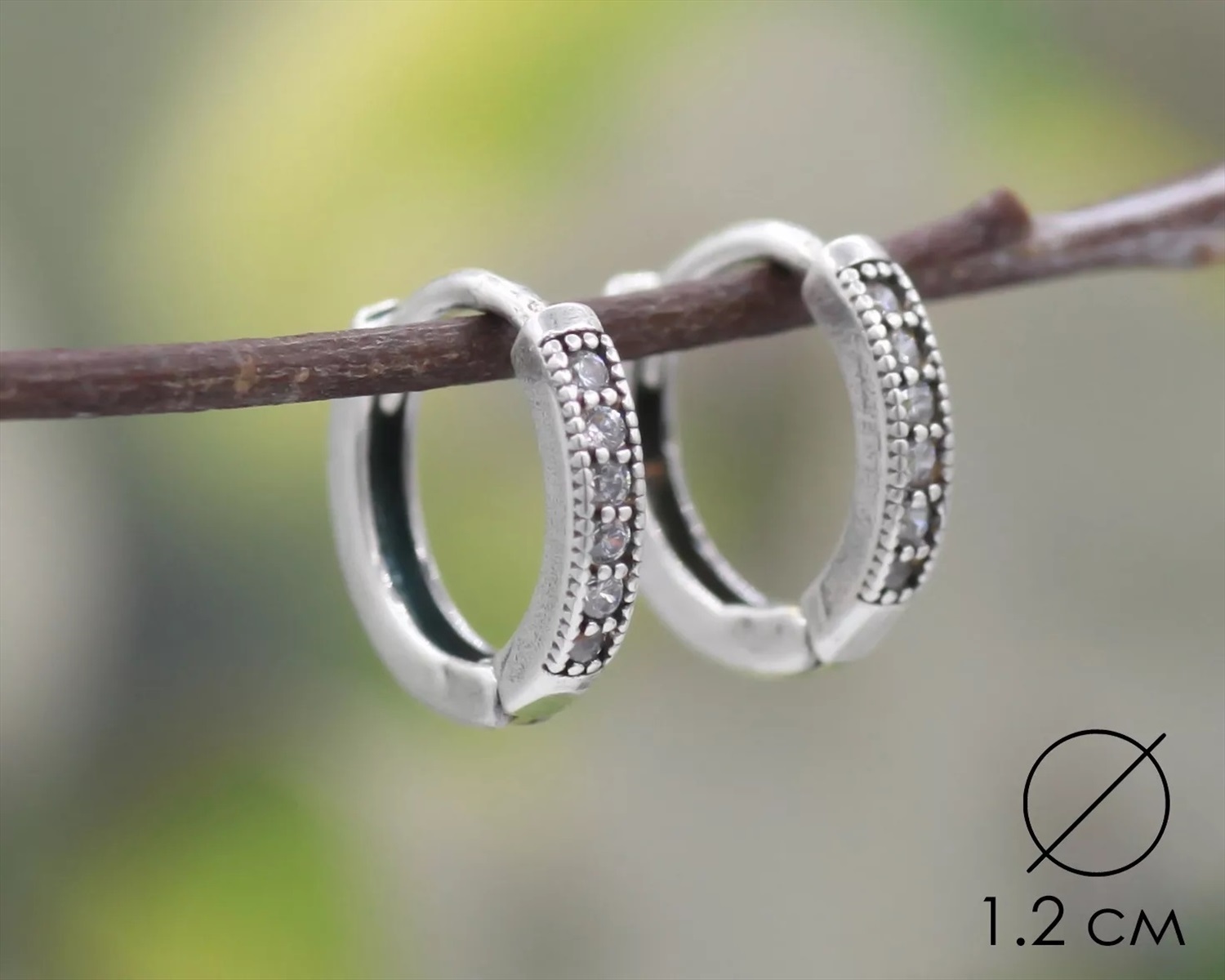 Материал изделия: покрыто серебром 999 пробы Размер: 1.2 см Цвет кристалла: Crystal 001 Серьги изготовлены из специального гипоаллергенного ювелирного сплава, покрыто серебром высшей 999 пробы. Для вставки используются стразы Preciosa